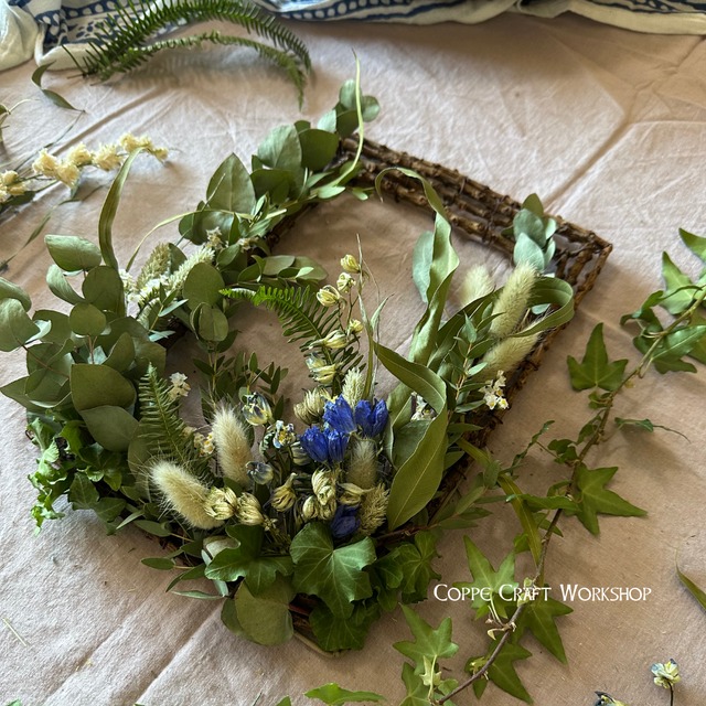 ■3月14日(土)13:00〜 「ユーカリのスクエアーリース」のレッスン参加チケットです Coppe Craft Workshop主催 柴田裕子による、季節のドライフラワーワークショップを開催いたします。 場所は渋谷・明治通り近くの「渋谷ファッション&アート専門学校」。 月1回の開催で、春・夏・秋・冬の年4回コース。ドライフラワーリース、アレンジメント、スワッグなど、季節感あふれる教材を使用し、少しだけ難しい作品にもチャレンジしていただけます。 少人数制(定員10名)のアットホームな教室で、初心者の方も安心してご参加いただけます。 ■ レッスン内容 季節のドライフラワーを使ったリース・アレンジメント・スワッグなどの制作 花材の扱い方、バランスの取り方、カラーコーディネートなども丁寧にレクチャー 完成後は、事前に用意したフォトブースにて作品撮影タイム → 撮影方法・構図・テクニックなどもレクチャーいたします。 SNS映えする写真の撮り方も学べます♪ 当日使用する道具類は全て貸し出しいたします。お持ち帰り用の袋のみご用意ください。 ■ 開催概要 【開催場所】 渋谷ファッション&アート専門学校(※4階-401教室) 〒150-0002 東京都渋谷区渋谷1-21-7 【開催日程】 月1回(年4回コース) 春・夏・秋・冬のシーズンごとに開催予定 ◎冬のコース開催日 1/24 2/7 3/14 【時間】 13:00~16:00(※4階-401教室) 【定員】 14名 【参加費】 1回分の参加チケットになります 参加費には受講料、材料費が含まれます。 ■ アクセス案内 各線 渋谷駅【宮益坂口】徒歩8分 (山手線・埼京線・銀座線・半蔵門線・田園都市線・井の頭線) 東京メトロ 渋谷駅【B1出口】徒歩3分 (東急東横線・副都心線・半蔵門線・田園都市線) JR原宿駅【表参道口】徒歩10分(山手線) 明治神宮前駅【7番出口】徒歩8分(千代田線・副都心線) 表参道駅【B2出口】徒歩10分(千代田線・銀座線・半蔵門線) ■ キャンセルポリシー ・開催日7日前までのキャンセル → 全額返金対応 ・6日前~当日キャンセル → 材料または完成品をお届け(送料着払い) ・生田アトリエレッスンに振り替え(日程はご相談) ・無断キャンセルは返金不可となります。あらかじめご了承ください。