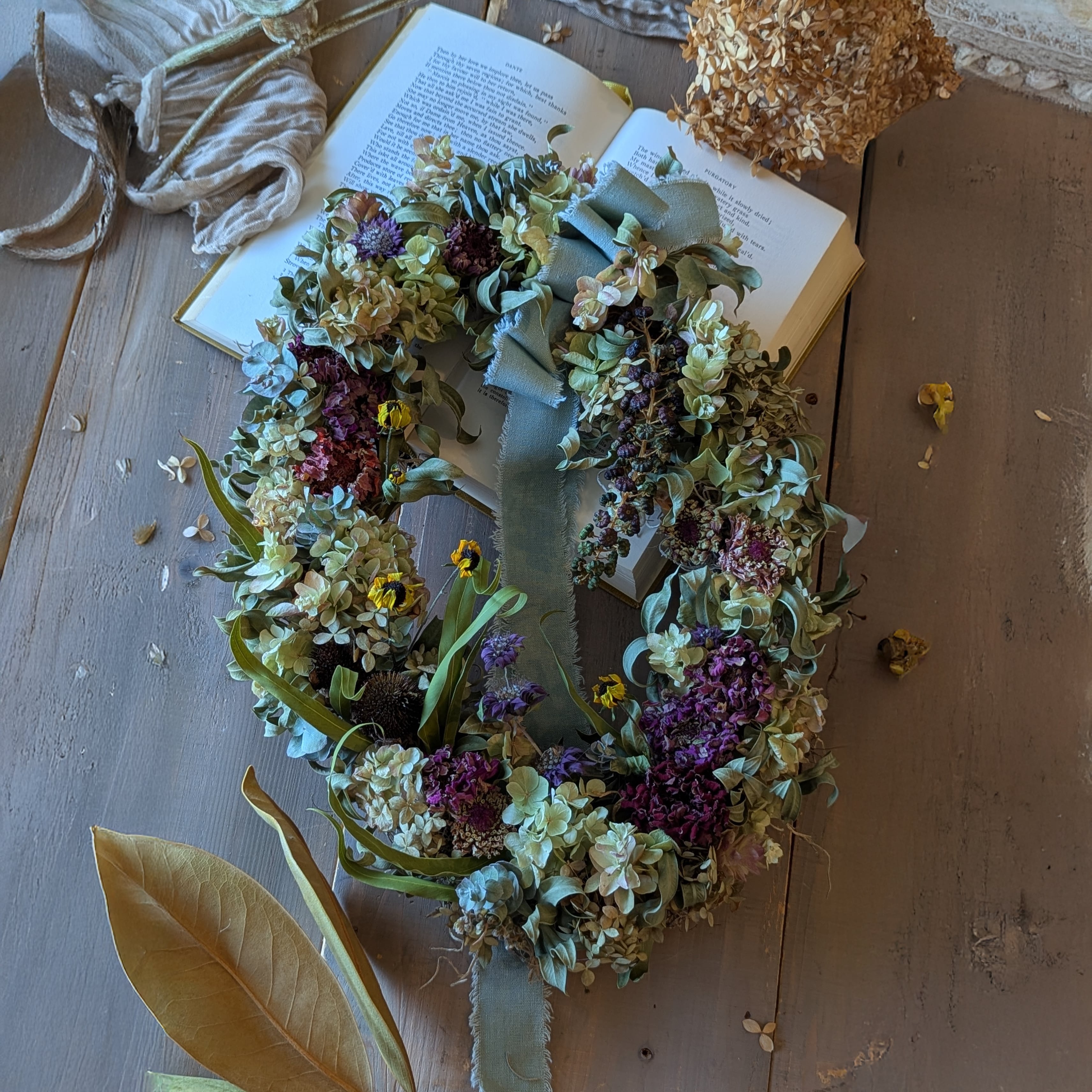 季節のドライフラワーを使ったリース・アレンジメント・スワッグなどの制作