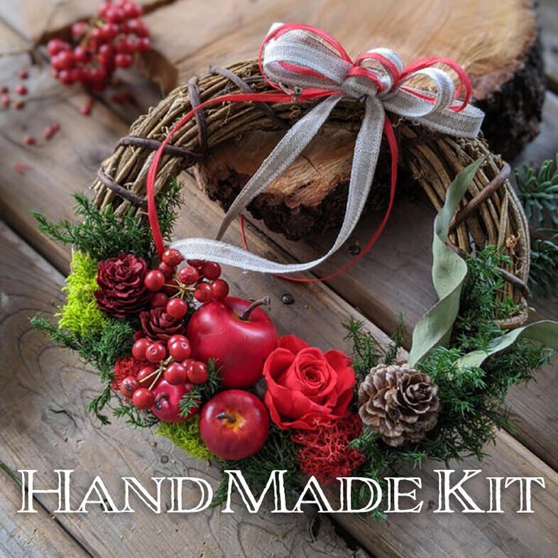 手作りキット [赤リンゴとバラのクリスマスリース]