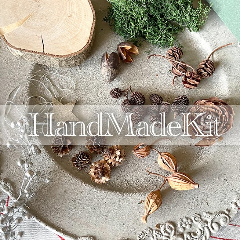 ※花材の詳細につきましては同梱されるマニュアルをご覧ください。このハンドメイドキットは動画レシピをご覧いただけます。URLはマニュアルにQRコードがついています。