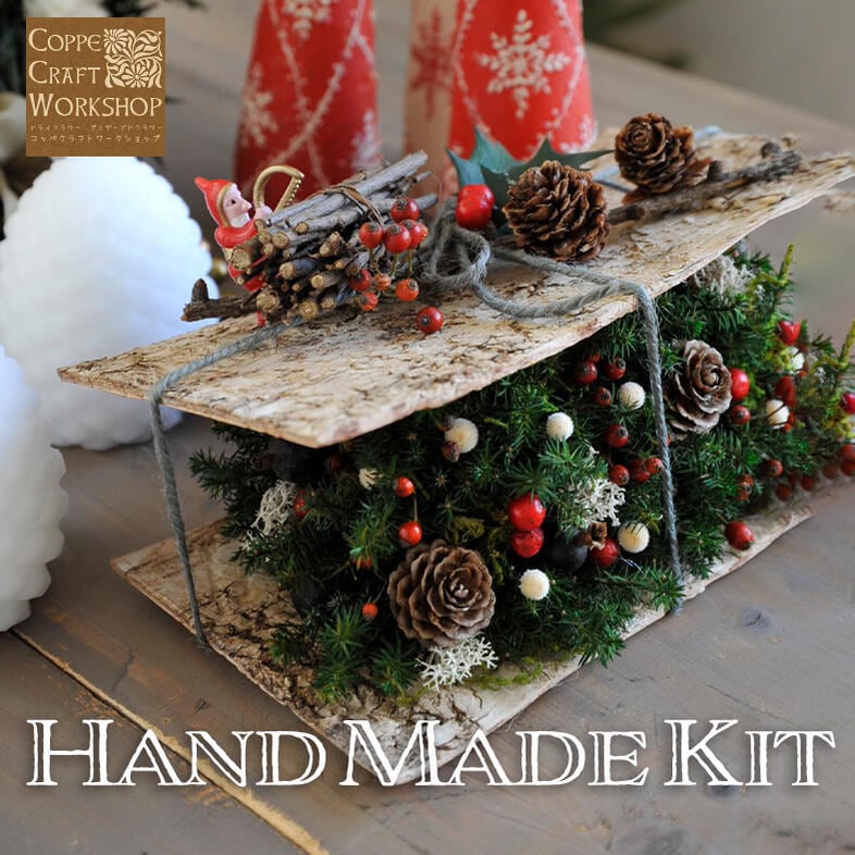 手作りの過程で白樺の樹皮や小枝と触れ合いながら、クリスマスの物語が詰まった可愛い世界観を形にしていく楽しみがあります。アレンジメントのディテールに工夫を凝らし、リボンをかけると完成するデコレーションは、プレゼントのように可愛らしく、飾る場所に応じて異なる表情を見せてくれるでしょう。